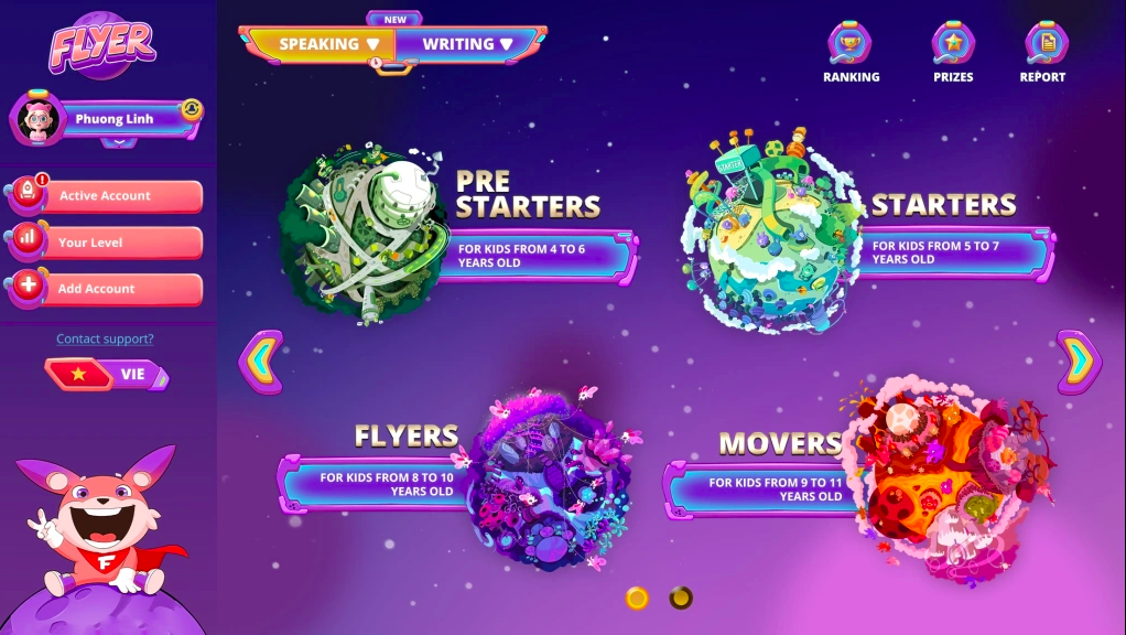 Firstly, the mission starts from our belief “that learning and preparing for English exams is a long journey. To get to the finish line, children first need to know what the milestones for each stage are and persevere in focused practice to achieve the set goals. The motivation for children to do this is nothing more than the joy and excitement of taking each test. English helps open up many opportunities for the future of the young generation. And FLYER aims to help every child maximize their English skills with fun and excitement, through the application of technology, “gamification” models and outstanding graphics.”