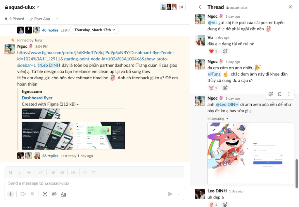The last example, Leadership not only comes from Startup C-levels but also from other departments. Our startup communicates on Slack, but we have very few interactions on the tool. Everything changed when Ngoc Le joined FLYER. She goes to all groups, chats, drops emotions, pushes the work, and the whole company refresh completely. We communicate, interact 4-5 times better than in the past.