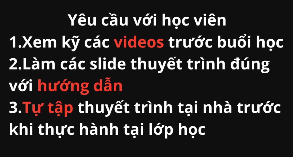 Thời gian: Khoá học sẽ diễn ra trong 3 buổi, mỗi buổi liên tục không nghỉ kéo dài khoảng 2.5 – 3 tiếng vào tối thứ 4 và thứ 7.
