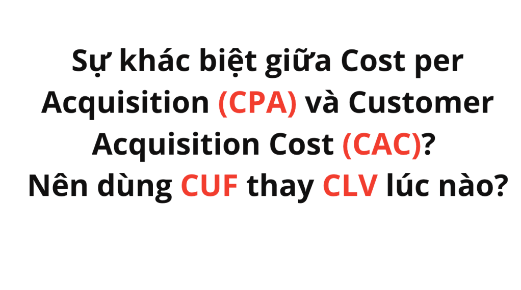 Nhưng CUF tốt hơn CLV ở thời điểm này vì nó là tiền bạn thu được khách ngay lập tức, thường là sẽ không phải trả lại khách hàng nên bạn sẽ tính được tỉ lệ chuẩn với số CAC ngay, mà không cần phải đợi vài ba năm để kiểm chứng chỉ số CLV.