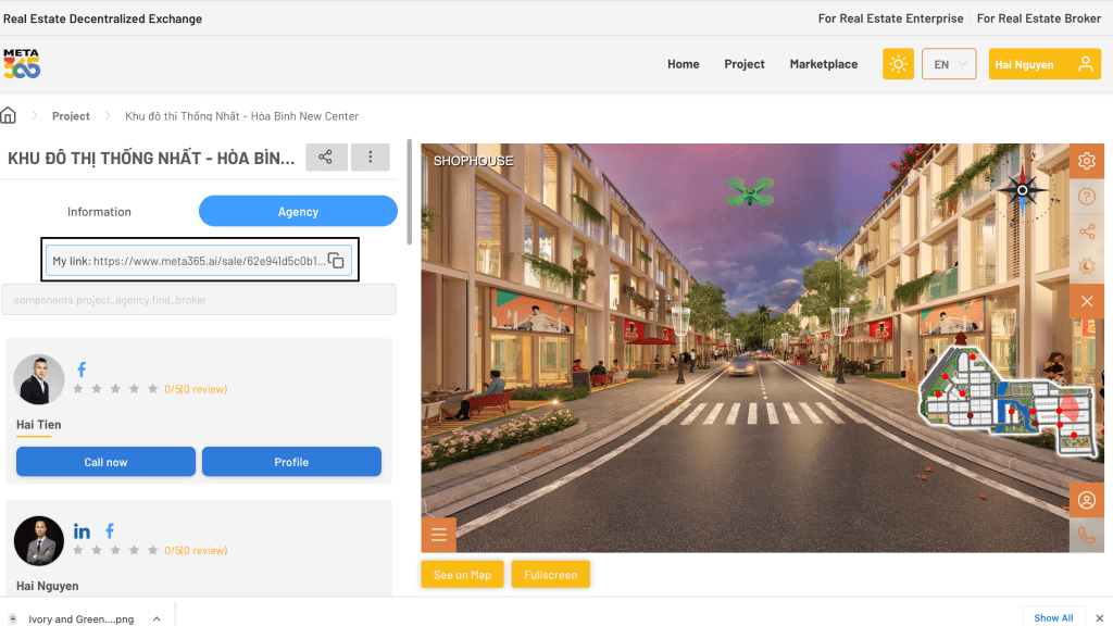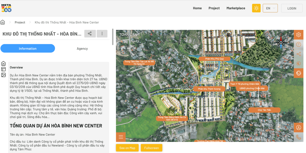 Hiện dự án Khu Đô Thị Thống Nhất – Hoà Bình là sản phẩm mới nhất có thế diễn hoạ hết giai đoạn đầu của sản phẩm Meta365 hướng tới, là một công cụ hỗ trợ bán hàng cho các môi giới bất động sản.