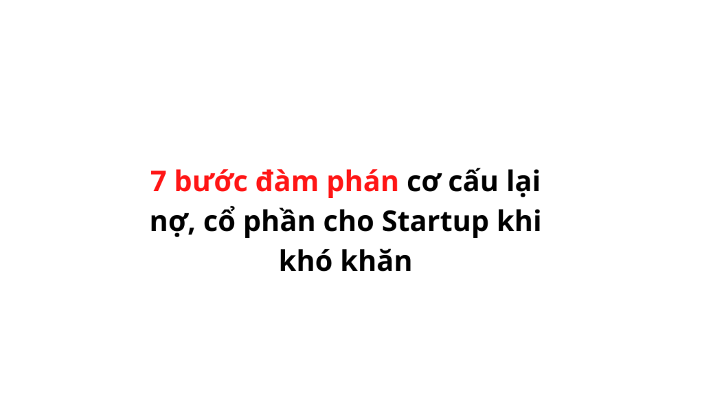 Hãy tham khảo ‘7 bước đàm phán cơ cấu lại nợ, cổ phần cho Startup’, đang được tôi áp dụng làm thực tế cho các Startups mình tham gia để đàm phán thành công với trên 20 nhà đầu tư: