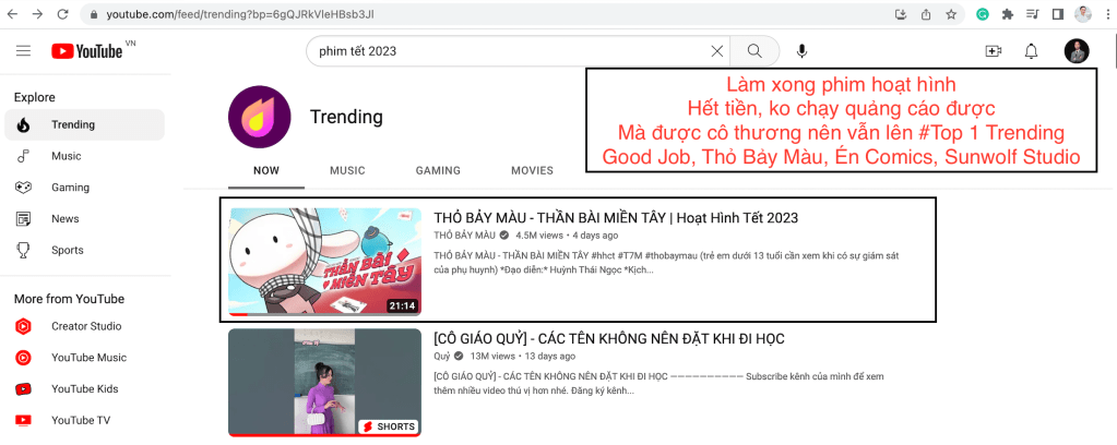 Với các tác phẩm có hàng triệu lượt xem như: U linh tích ký – Bột Thần Kỳ, Thần Bài Miền Tây – Thỏ 7 Màu, Én (Đang Top1 Trending Youtube)