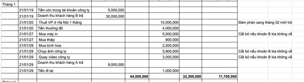 Khi làm việc với các nhà sáng lập, tôi thấy phần đông đều không giỏi trong việc quản lý thu chi. Dẫn đến các khoản phải chi trong tương lai luôn nhiều hơn khoản thu.
