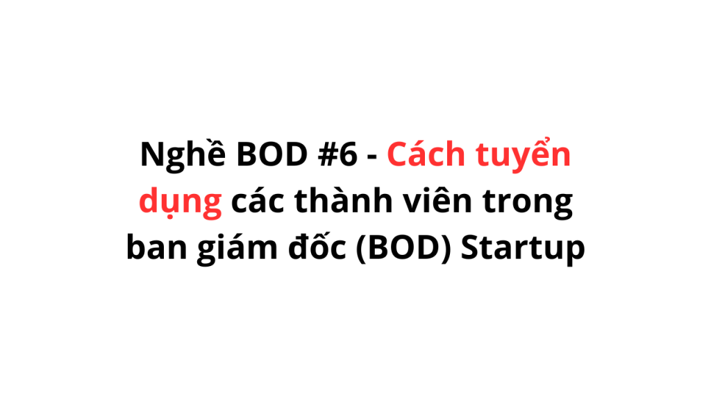 Trong Bài #6 – Cách tuyển dụng các thành viên trong ban giám đốc (BOD) Startup