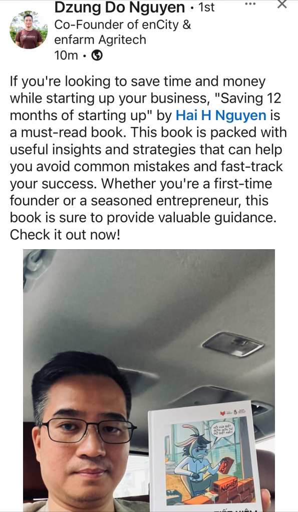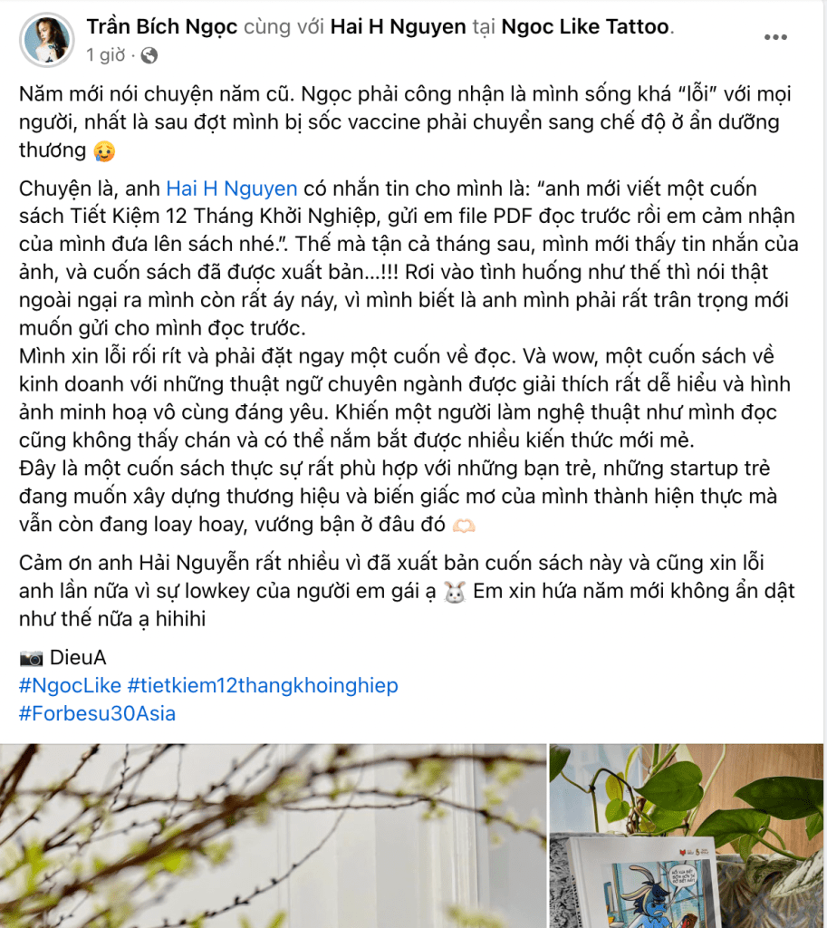Đây là bài Blogs tổng hợp liên tục những chia sẻ, đánh giá của những người đã đọc sách (Testimonials) “Tiết kiệm 12 tháng khởi nghiệp” của mình