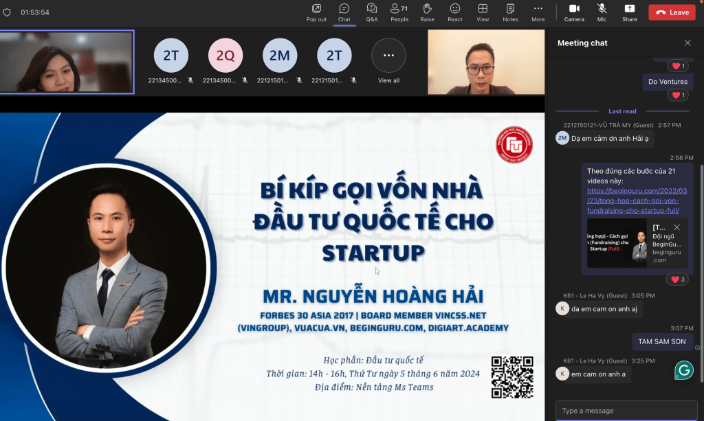 Hôm qua tôi mới chia sẻ Online về chủ đề huy động vốn quốc tế cho Startup với 100 bạn sinh viên khoa quốc tế FTU Hà Nội