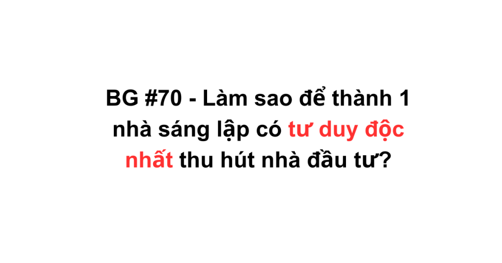 1)Ai cũng muốn trở thành một nhà sáng lập có tư duy độc nhất thu hút nhà đầu tư?