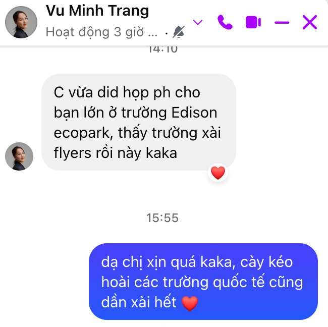 Hôm qua 01 người bạn đi họp phụ huynh về từ trường quốc tế Edison (khu đô thị Ecopark) có nhắn tôi là nhà trường đang sử dụng sản phẩm Flyer – 1 phòng luyện thi tiếng ảnh online mà tôi từng là người tham gia hội đồng quản trị (BOD) hỗ trợ những ngày đầu.
