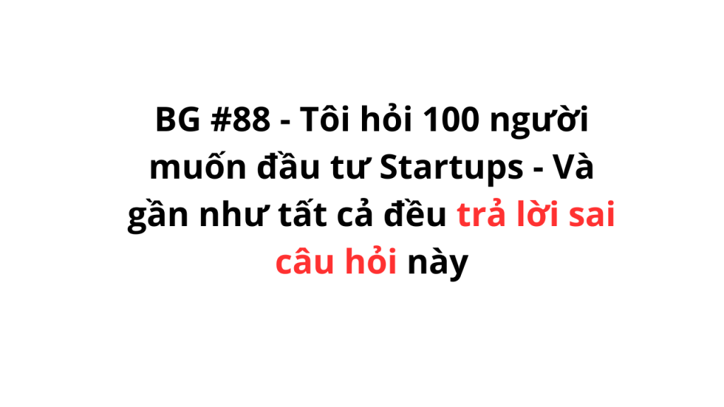 Trong 14 năm làm về lĩnh vực khởi nghiệp, gọi vốn, đầu tư. Nhiều nhà đầu tư cá nhân tìm tới hỏi tôi giới thiệu cho các cơ hội đầu tư vào các Startups mà tôi tham gia BOD, câu đầu tiên tôi hỏi lại luôn là: